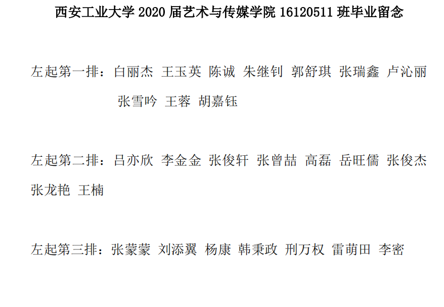 英国正版365官方网站2020届艺术与传媒公司16120511班毕业留念