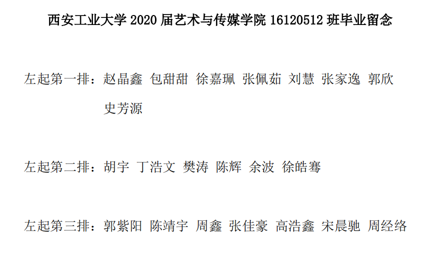 英国正版365官方网站2020届艺术与传媒公司16120512班毕业留念